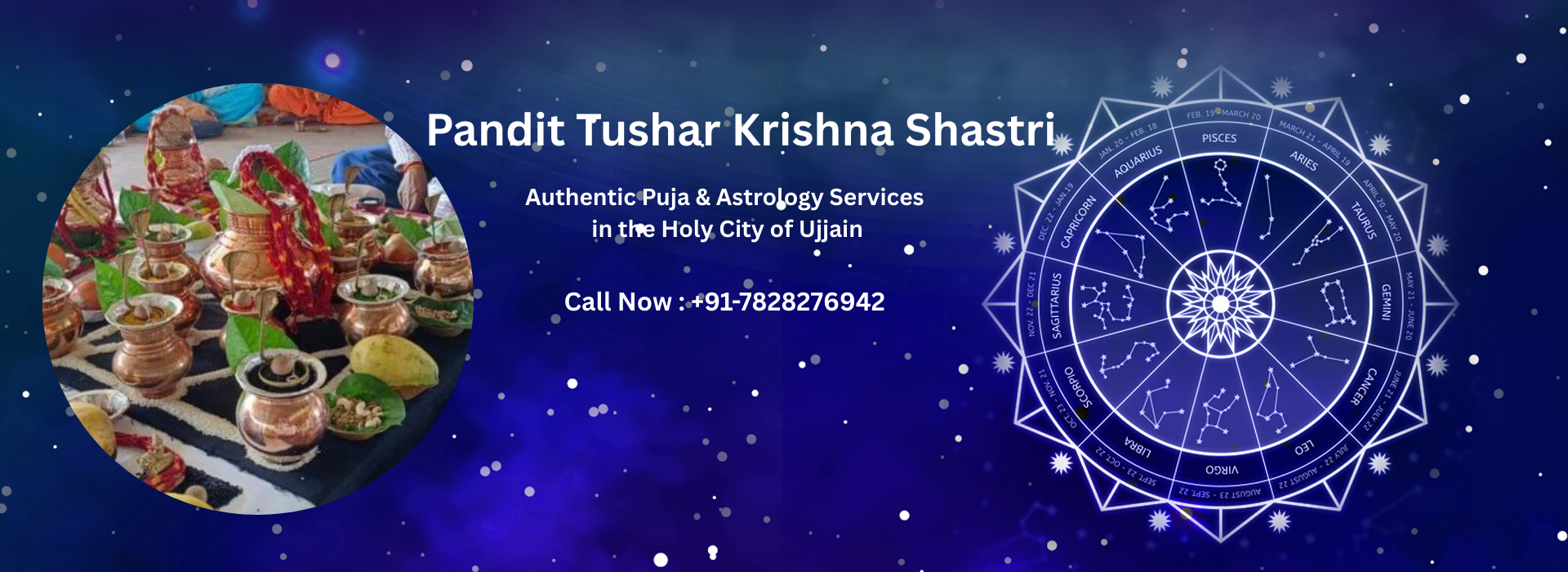 Pandit Tushar Krishna Shastri is a respected and devoted priest and astrologer based in the holy city of Ujjain, a place renowned for its deep spiritual heritage and timeless connection with Vedic traditions. With years of dedicated practice in Vedic rituals, astrology, and spiritual guidance, Pandit Ji has earned the trust of countless devotees who seek authentic, result-oriented, and scripture-based solutions. Rooted in the classical teachings of the Vedas, Puranas, and Jyotish Shastra, his approach combines traditional wisdom with compassionate understanding of modern-day challenges. Every puja and astrological consultation is performed with complete devotion, precise mantras, and strict adherence to ritual procedures, ensuring spiritual purity and positive outcomes for individuals and families alike. Pandit Tushar Krishna Shastri provides all types of puja and astrology services in Ujjain, catering to a wide range of spiritual, personal, and professional needs. His services include Grah Shanti Puja, Kaal Sarp Dosh Puja, Mangal Dosh Puja, Rudrabhishek, Maha Mrityunjaya Jaap, Navagraha Puja, Pitru Dosh Nivaran, Vastu Shanti, Satyanarayan Katha, marriage-related rituals, and special pujas associated with Ujjain’s sacred significance.
